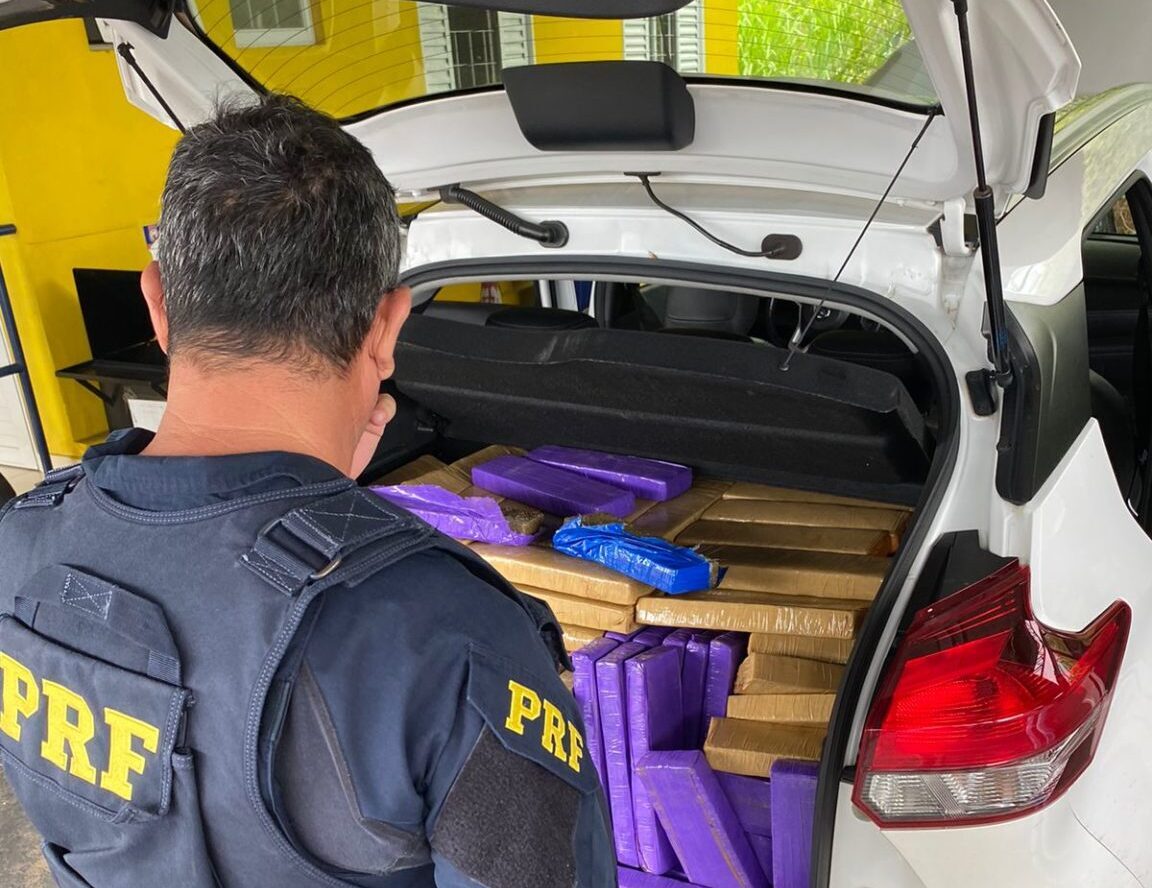 O condutor foi detido e os agentes fizeram uma busca que localizou 367 tabletes de maconha, escondidos no porta-malas.