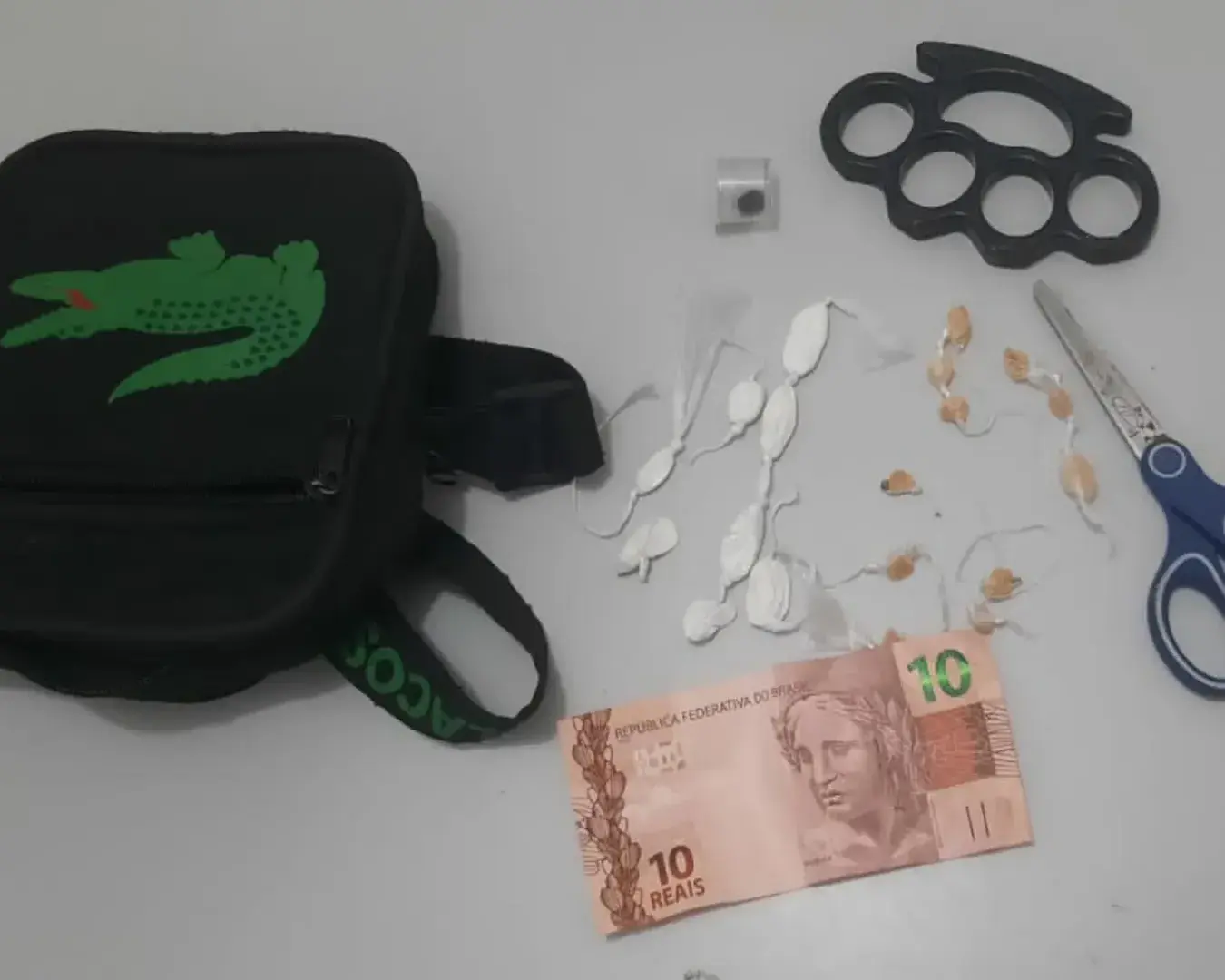 Na sacola, havia 68 porções de cocaína, 41 de crack e 31 de maconha, além de dinheiro. O suspeito relatou que recebia pagamento diário para vender as drogas.