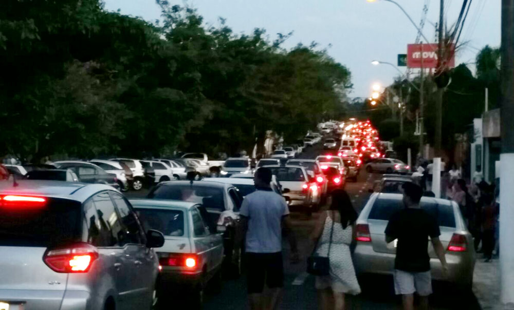 Algumas pessoas levaram quase duas horas para atravessar o trecho de quatro quilômetros. O problema é que não há via alternativa para sair da região, a passagem pela avenida é obrigatória.