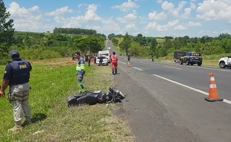 Acidente aconteceu na BR-153 (Foto: Reprodução vídeo/ Alcyr Netto/TV TEM)