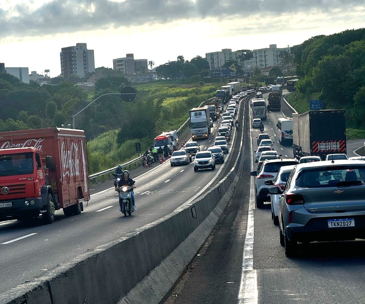 Equipes da concessionária responsável pelo trecho e policiais rodoviários permanecem no local para sinalização e controle do tráfego, que seguia lento nos dois sentidos, até por volta das 9h.