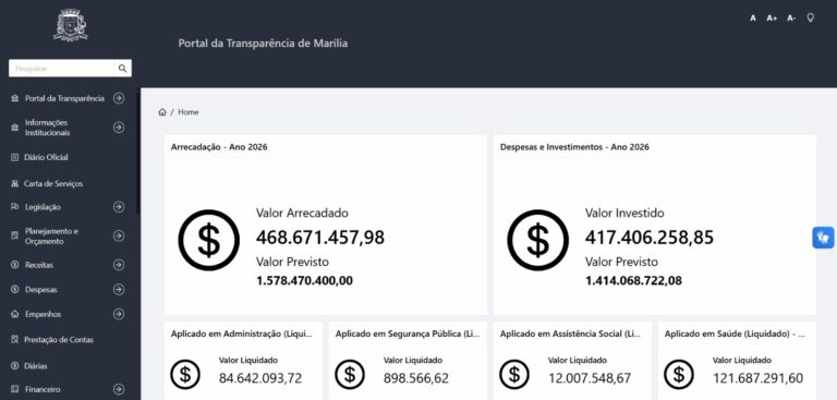 A reportagem do MN entrou em contato com a Prefeitura de Marília para comentar a estrutura do portal e eventuais medidas de aprimoramento na apresentação das informações, mas não houve retorno até a conclusão desta matéria. O espaço segue aberto para manifestação.