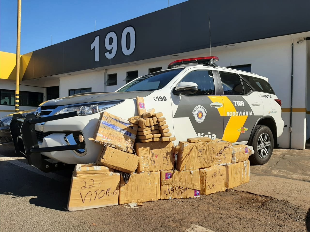 Foi abordado um veículo Polo, ocupado apenas pelo condutor, e em revista no carro a polícia localizou no porta-malas aproximadamente 150 quilos de maconha, distribuídos em diversos fardos e tabletes.