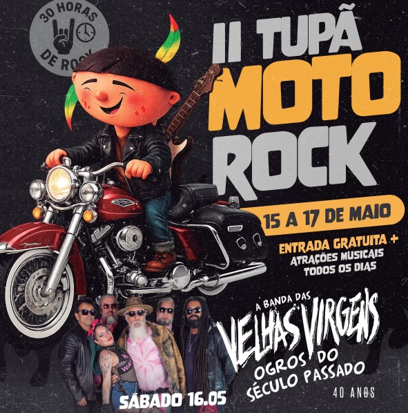Tupã recebe, entre os dias 15 e 17 de maio, a segunda edição do Tupã Moto Rock, evento que reunirá motociclistas, fãs de rock e o público em geral em três dias de programação cultural e musical. A entrada será gratuita, segundo a organização.