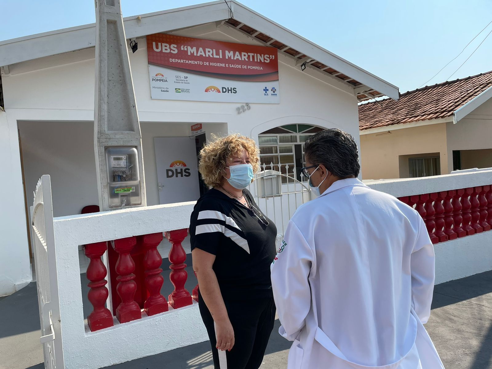 A coordenadora do DHS, Gislaine Souza, destaca o Programa Saúde da Família, implantado em todas as UBSs e USFs de Pompeia, que visa priorizar o atendimento na atenção básica, como objetivo principal da pasta.