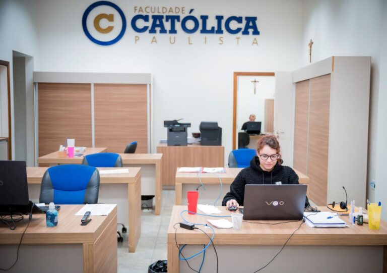 A Católica Paulista destaca que mais de 80% dos alunos atuam na área de formação. O programa UCA Emprega conecta estudantes em dificuldade financeira a empresas conveniadas, oferecendo vagas e suporte profissional.
