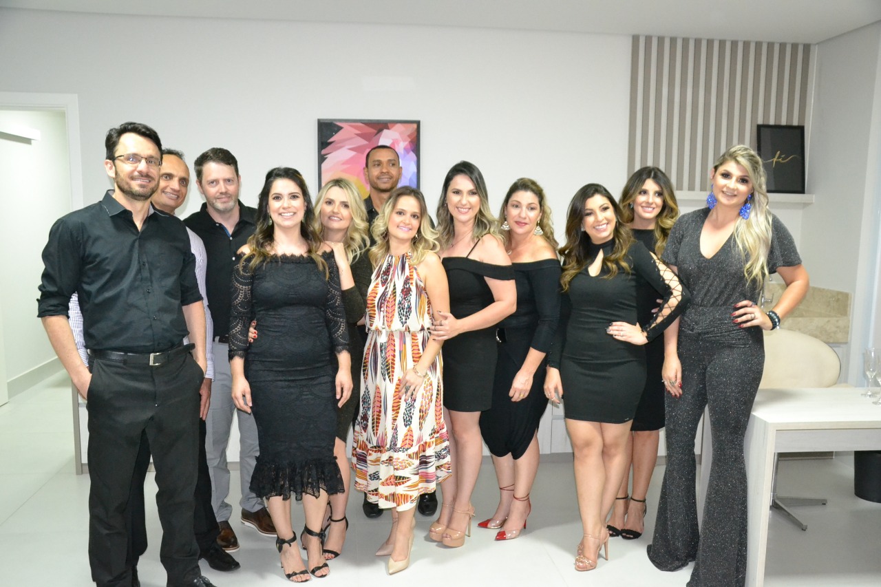 O projeto atual do prédio onde funciona a clínica foi pensado pela arquiteta Bárbara Biondo, que aparece na foto abaixo, bem ao meio, com vestido colorido.