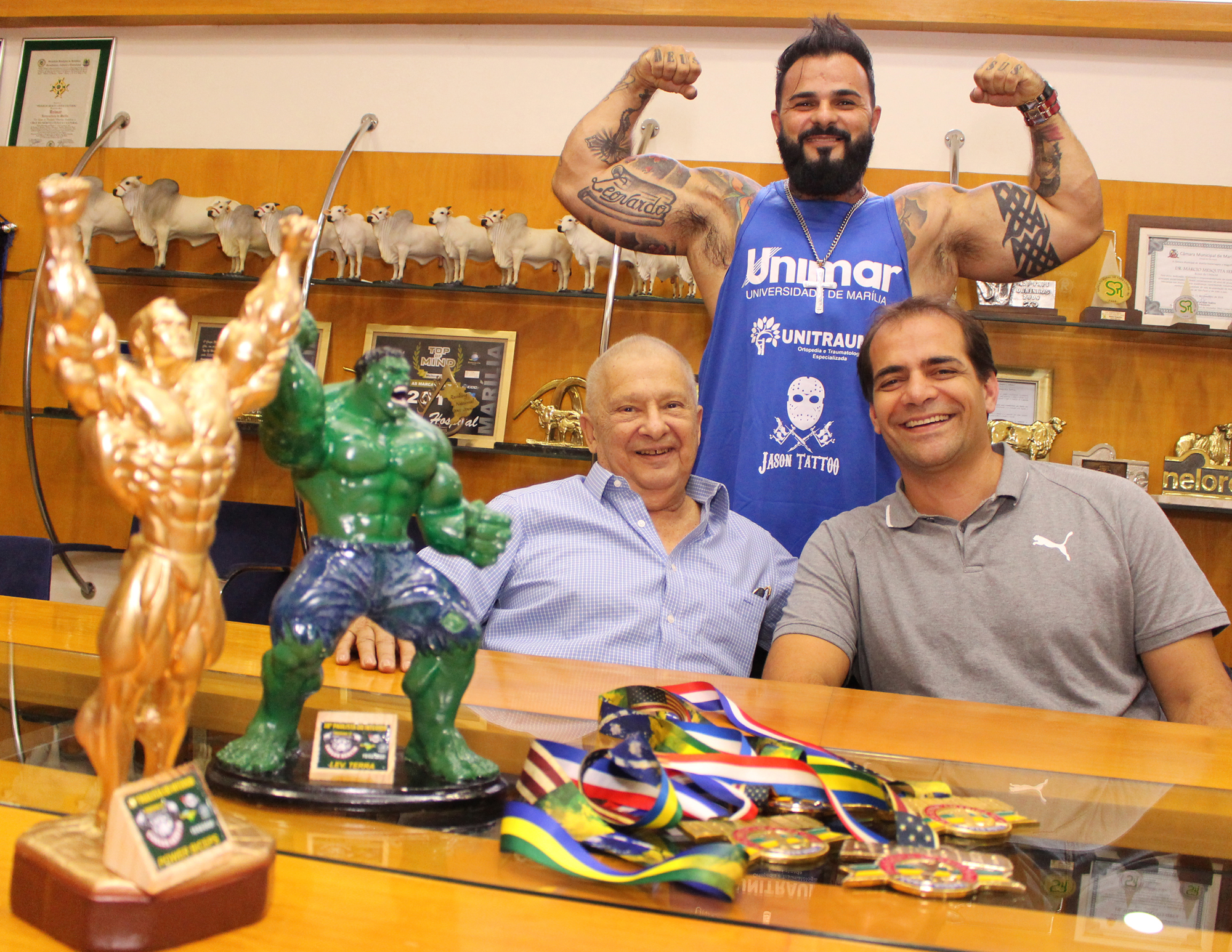 O halterofilista Eduardo Arenas visitou o Reitor da Universidade de Marília, Dr. Márcio Mesquita Serva, e o ortopedista, Carlos Henrique Bertoni Reis, para apresentar os novos troféus e medalhas conquistados no Campeonato Paulista do Interior, na modalidade Levantamento Terra e Power Bíceps, ambas da categoria deficiente físico. O paratleta recebe apoio e patrocínio da Unimar.