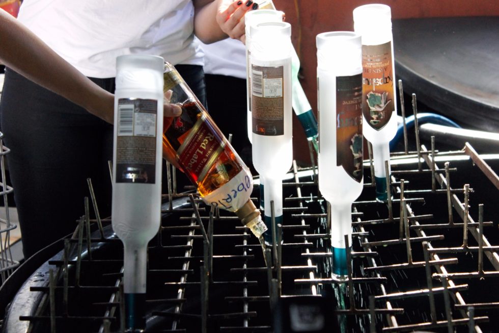 “As bebidas doces passam por fermentação que dura cerca de 48 horas, enquanto as demais vão direto para o destilador. No processo, os elementos que restam viram adubos e as embalagens são doadas para a Cooperativa Cotracil”, acrescenta Neves.