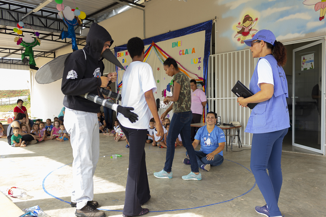Teatro, brincadeiras e distribuição de material educativo direcionado aos pais foram algumas das ferramentas da equipe USF (Unidade Saúde da Família) Maracá para abordar as crianças da Emei (Escola Municipal de Educação Infantil) Clara Luz. O alvo é mosquito Aedes Aegypti, transmissor da dengue, zika e chikungunya.