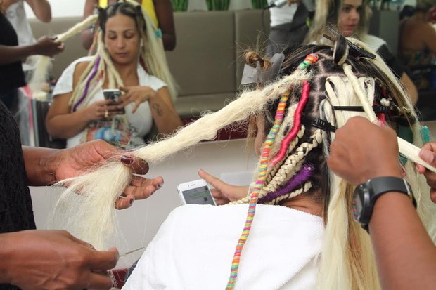 “Queria fazer algo diferente para o carnaval, algo que eu nunca tivesse feito. Não sabia como funcionava, tive medo de fica careca depois, mas a vivi, minha cabeleireira, disse que o procedimento não iria detonar meu cabelo” explicou Valesca.