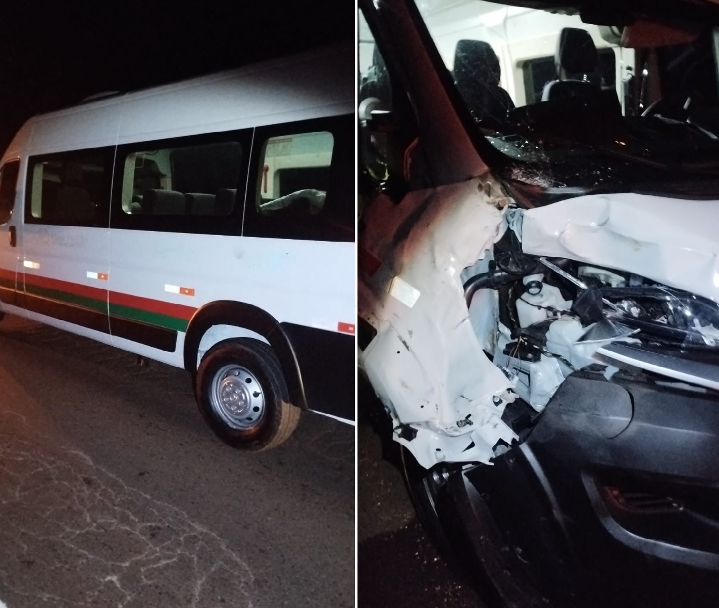 Um acidente deixou uma van de transporte de pacientes, na madrugada desta sexta-feira (11), com a frente destruída. Felizmente, os ocupantes ficaram ilesos. O veículo seguia pela rodovia Comandante João Ribeiro de Barros (SP-294), quando o condutor se deparou com o animal na pista.