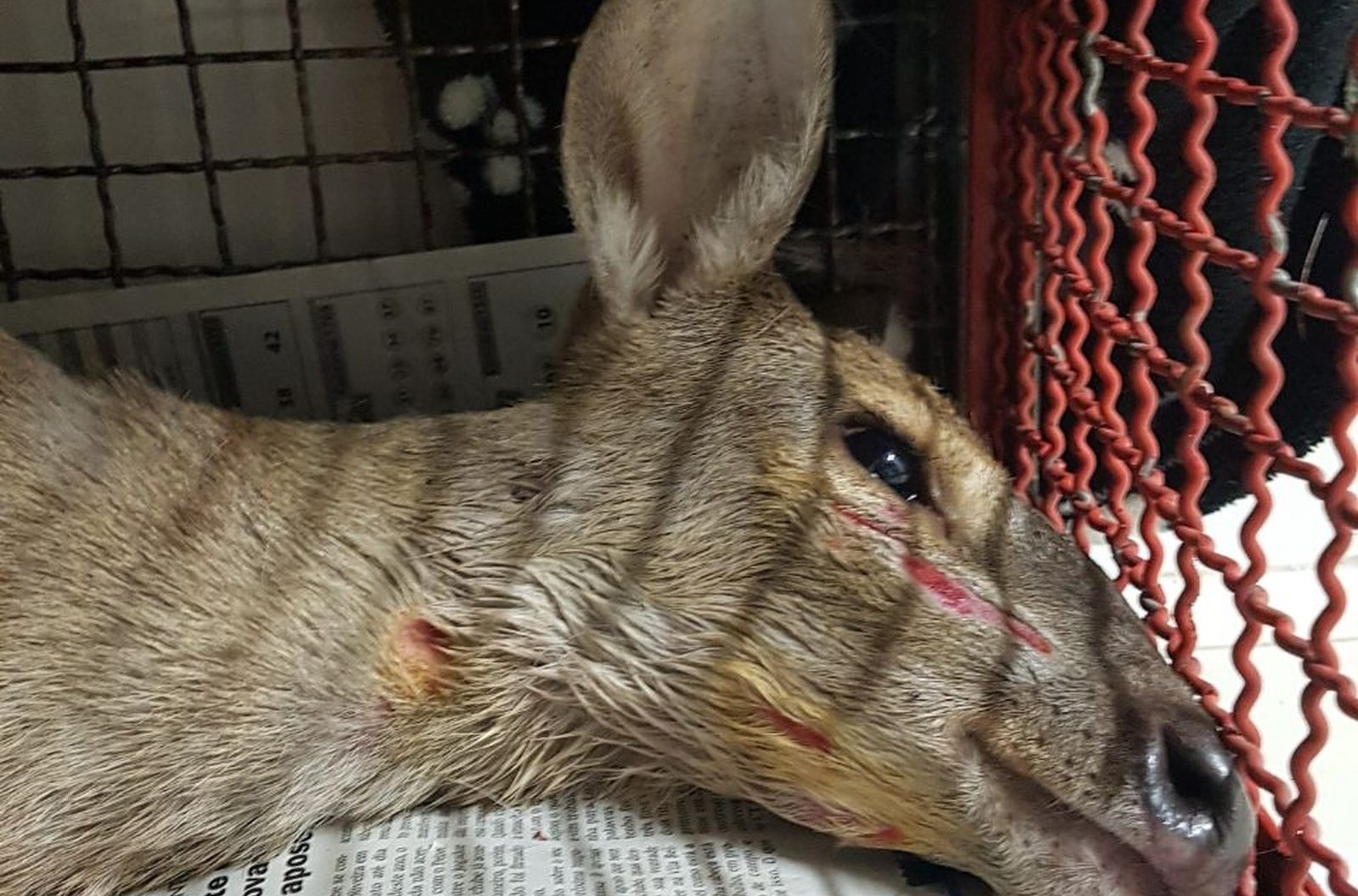 Um veado-catingueiro foi resgatado em uma casa no bairro Fragata, zona Sul de Marília, na tarde de quinta-feira (13). Corpo de Bombeiros, Polícia Ambiental, Centro de Zoonoses e voluntários da ONG Defesa e Proteção Animal de Marília (Dpam) participaram da ação.