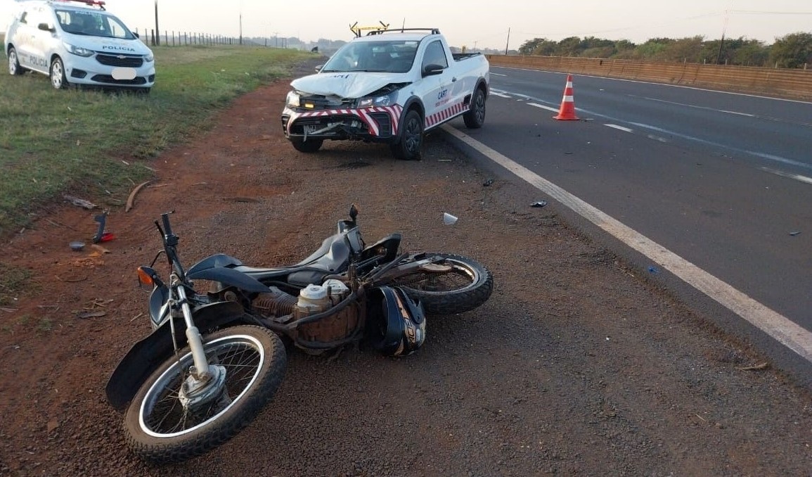 Um acidente envolvendo uma caminhonete e uma motocicleta foi registrado na manhã desta segunda-feira (29) na rodovia Raposo Tavares (SP-270), município de Ibirarema. O motociclista que seguia no sentido oeste (de Ourinhos a Assis) ficou ferido ao ser atingido por uma caminhonete da concessionária que administra a própria via.