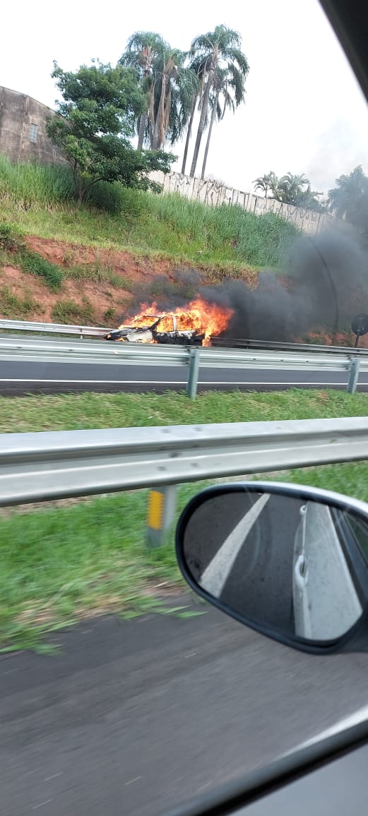 O incêndio teria começado devido a uma pane elétrica. O motorista percebeu a tempo e conseguiu sair do automóvel.