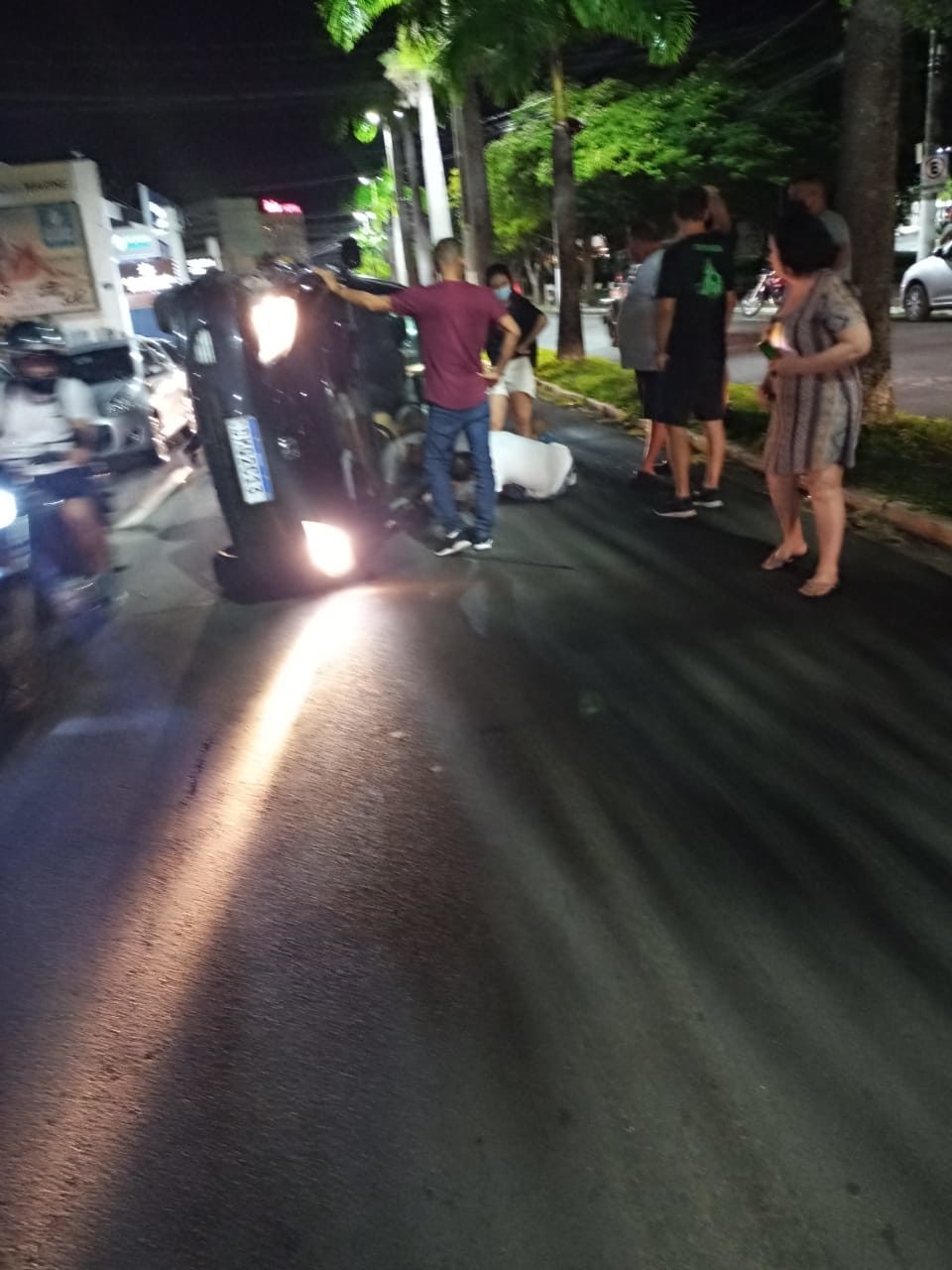 Com o impacto da colisão, o Honda Civic acabou tombando na via. A proprietária do Pálio viu quando seu carro foi atingido e chamou o socorro para o condutor do Civic.