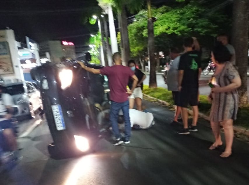 Um veículo capotou após colidir em um carro estacionado na noite desta segunda-feira (22), na avenida das Esmeraldas, zona Leste de Marília.