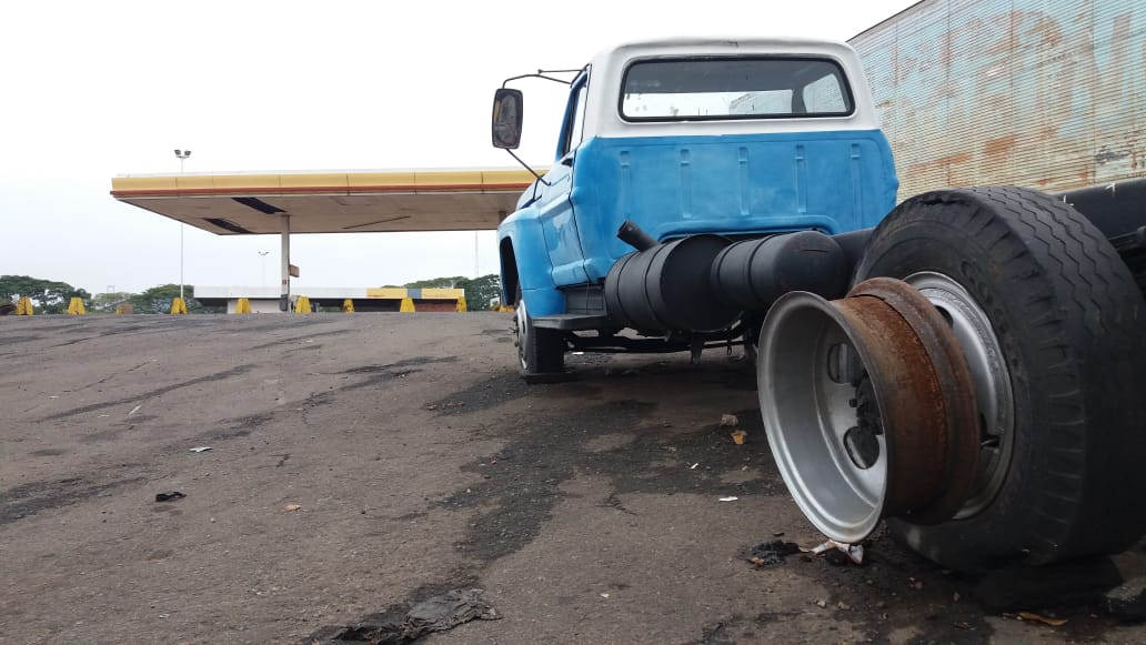 No entanto, outros veículos parecem estar ali se deteriorando há bastante tempo. Caminhões sem pneus, com vidros quebrados e outras avarias são alguns dos exemplares.