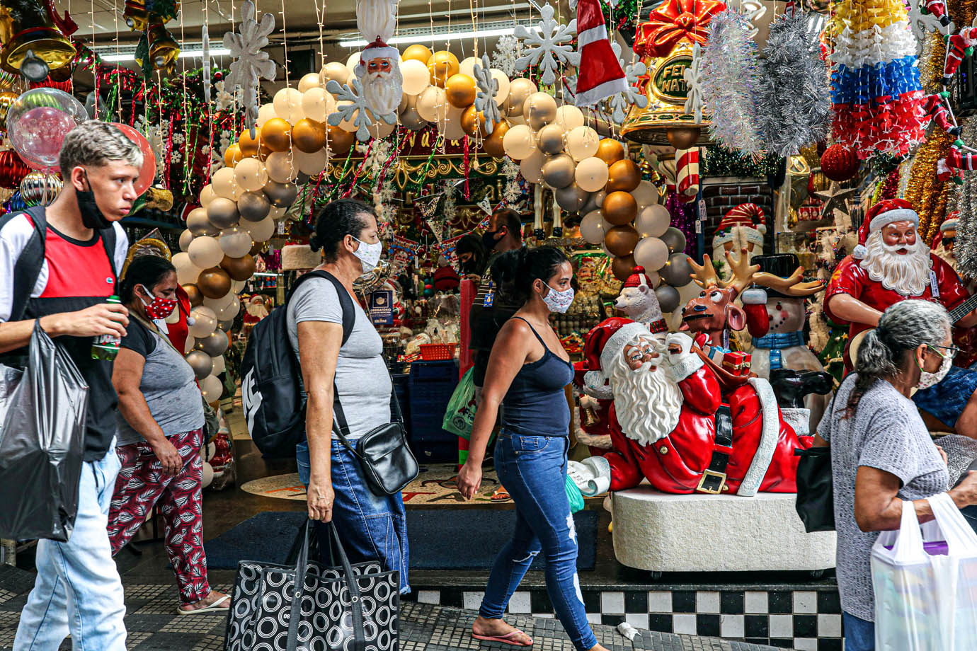 People walk at the Ladeira Porto Geral popular shopping street before Christmas, amid the coronavirus disease (COVID-19) outbreak, in downtown Sao Paulo, Brazil December 21, 2020. REUTERS/Amanda Perobelli