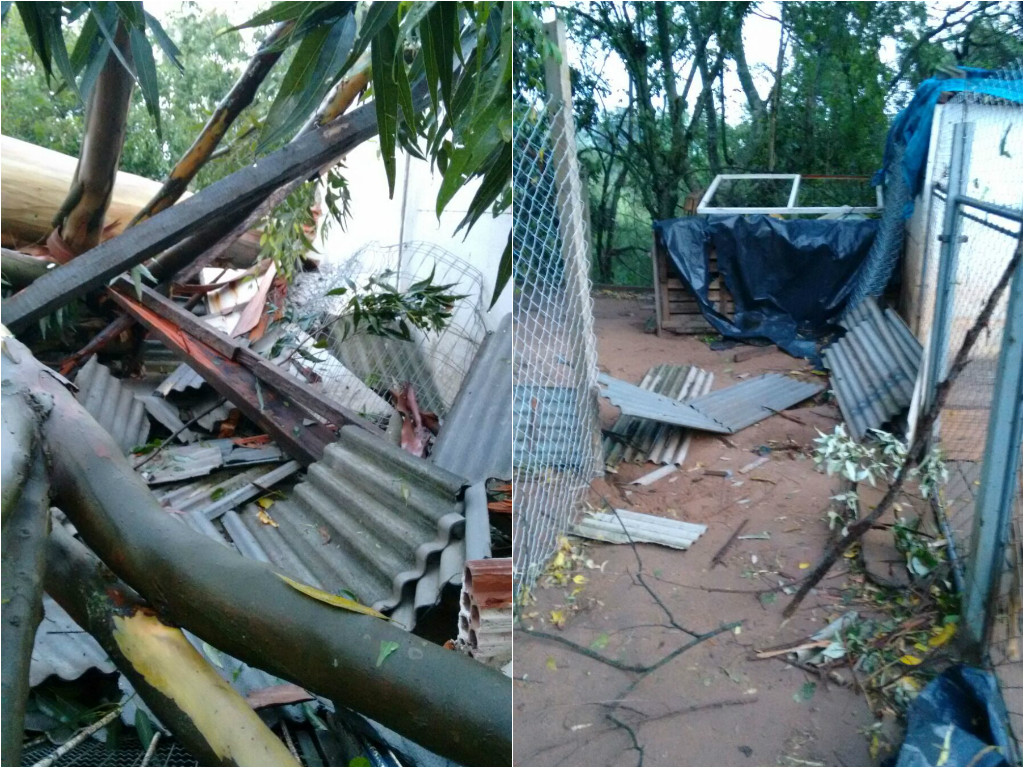 A sede da ONG Garra (Grupo de Apoio, Resgate e Reabilitação Animal), na zona leste, foi parcialmente destruída com os fortes ventos. O abrigo dos cães foi todo destelhado e os animais foram removidos temporariamente para casa de integrantes e amigos da entidade.
