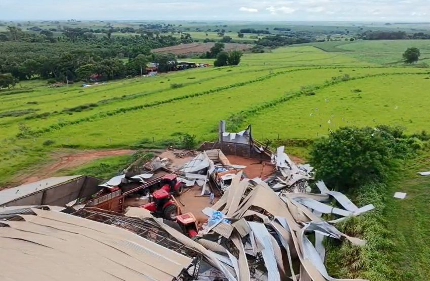 O espaço integra um projeto de incentivo ao desenvolvimento agrícola local. Parte da estrutura não resistiu à força dos ventos e desabou. Imagens registradas pelos produtores mostram a extensão dos danos, com trechos do barracão completamente colapsados.
