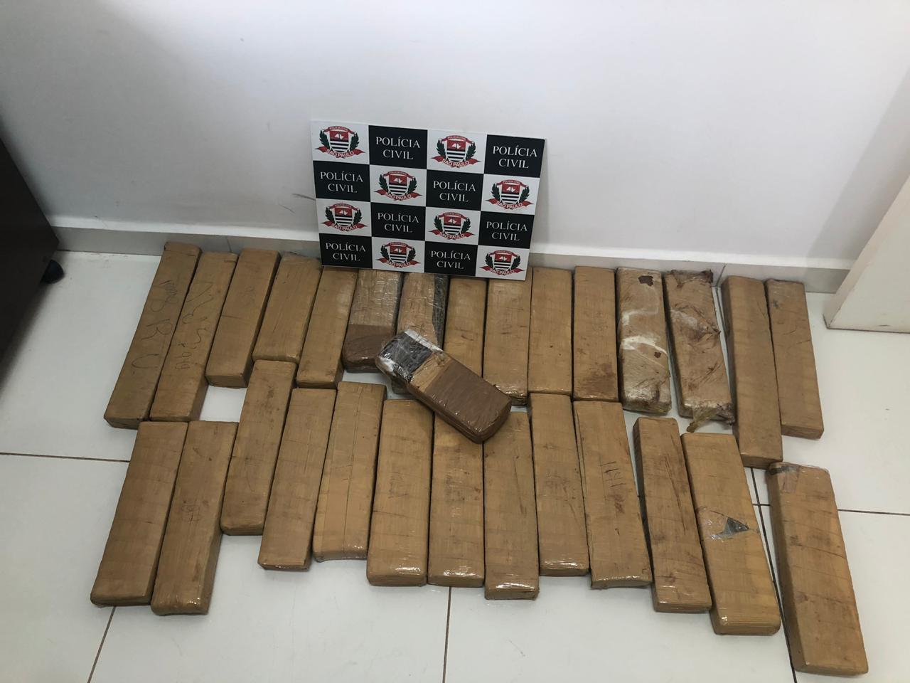 Após algumas semanas de diligências, policiais civis apreenderam quase 30 quilos de maconha, distribuídos em 29 tijolos, a operação teve a coordenação do delegado Flávio Delgado de Melo.
