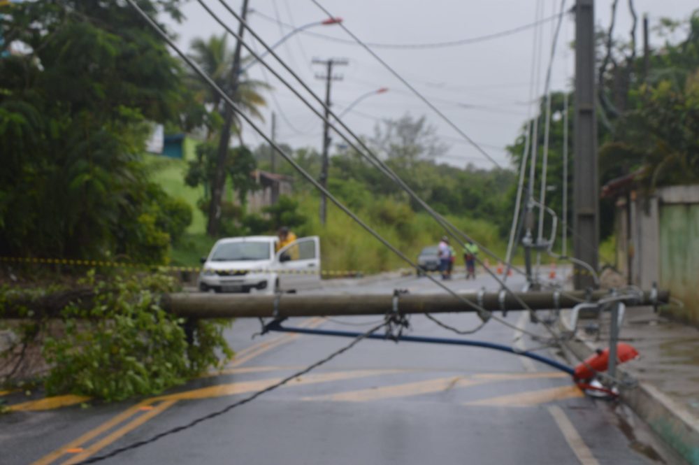 Com a ventania no final da tarde desta quinta-feira (6), postes de energia foram atingidos e chegaram a cair. Por esse motivo, o Saae pede aos moradores dos bairros atingidos que usem água com cautela, já que a eletricidade é necessária para mandar água às residências.