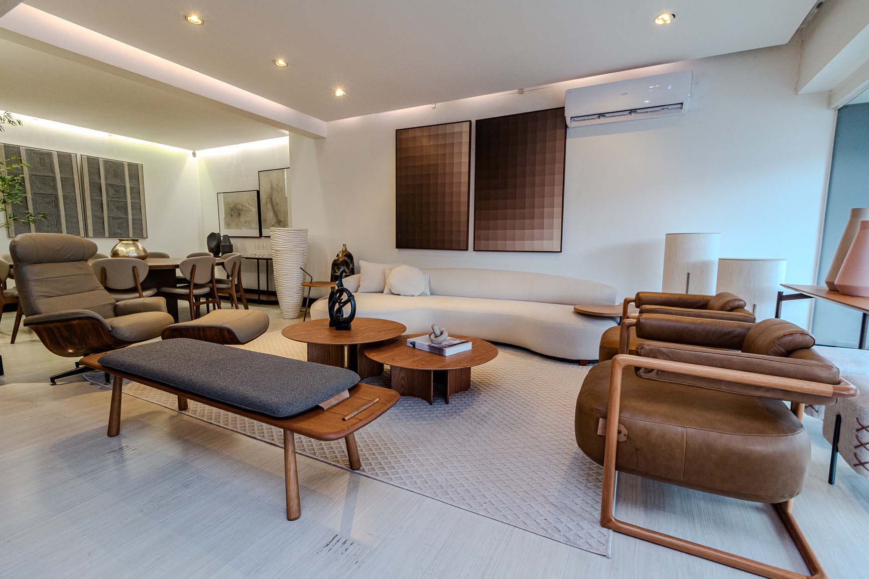 A loja trabalha com as principais marcas do mercado e possui muitas peças exclusivas, com designs premiados, que fazem parte de diversos ambientes expostos na loja.