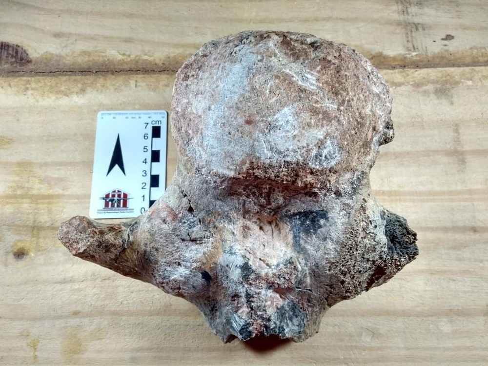 O paleontólogo Fabiano Vidoi Iori identificou como uma vértebra de titanossauro o fóssil que retirou do barranco de uma grota, há um mês, na zona rural de Uchoa, região norte do Estado de São Paulo. O osso, que estava isolado por ter se separado do esqueleto, foi levado para o Museu Paleontológico Pedro Candolo, na área urbana. “O fóssil está em fase de preparação, mas já dá para saber que é uma vértebra do ‘pescoçudo'”, disse, referindo-se à principal característica desse herbívoro.