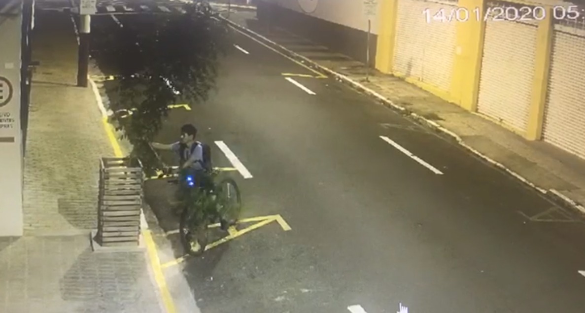 O flagrante feito por uma câmera de segurança na região central de Marília tem chocado a internet. Na madrugada do último dia 14 de janeiro um jovem de bicicleta foi filmado vandalizando uma árvore. Veja as imagens abaixo.