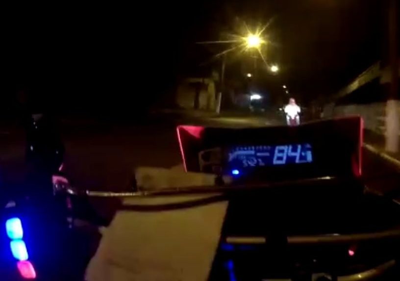 Próximo da meia-noite, ele não respeitou a ordem de parada e fugiu em alta velocidade por ruas e avenidas daquela região da cidade, passando de 100 quilômetros por hora.