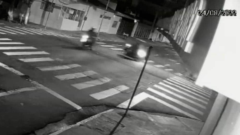É possível notar que a moto conduzida pela vítima fatal seguia pela avenida República (aparece pela esquerda do vídeo) e bate com o outro veículo ocupado pelo casal, que cruzava pela rua Antônio Prado (a moto que aparece pela direita do vídeo).