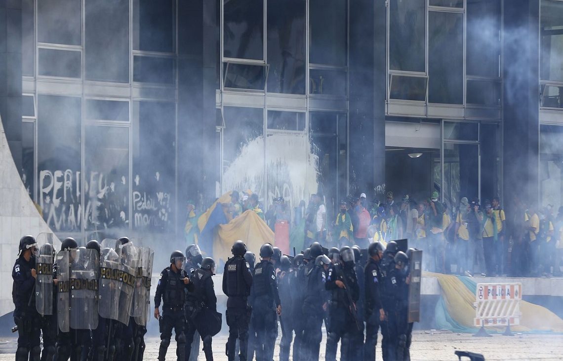 3º Na chegada à Praça dos Três Poderes, Polícia Judicial contém parte dos golpistas com bombas de efeito moral e gás lacrimogêneo