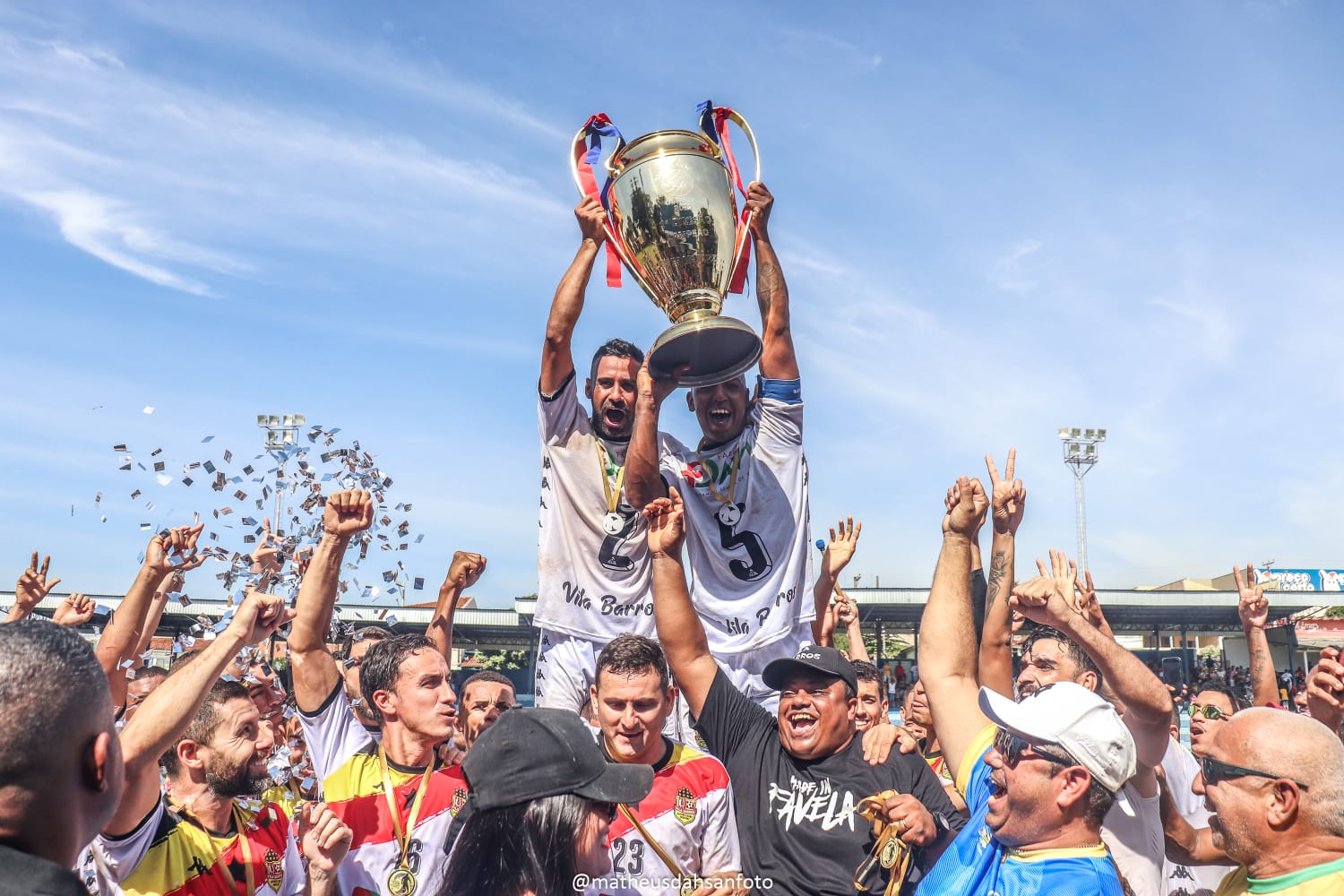 Jogadores do Vila Barros levantam a taça e comemoram o título da Super Copa Marília (Foto: Divulgação/Matheus Dahsan)
