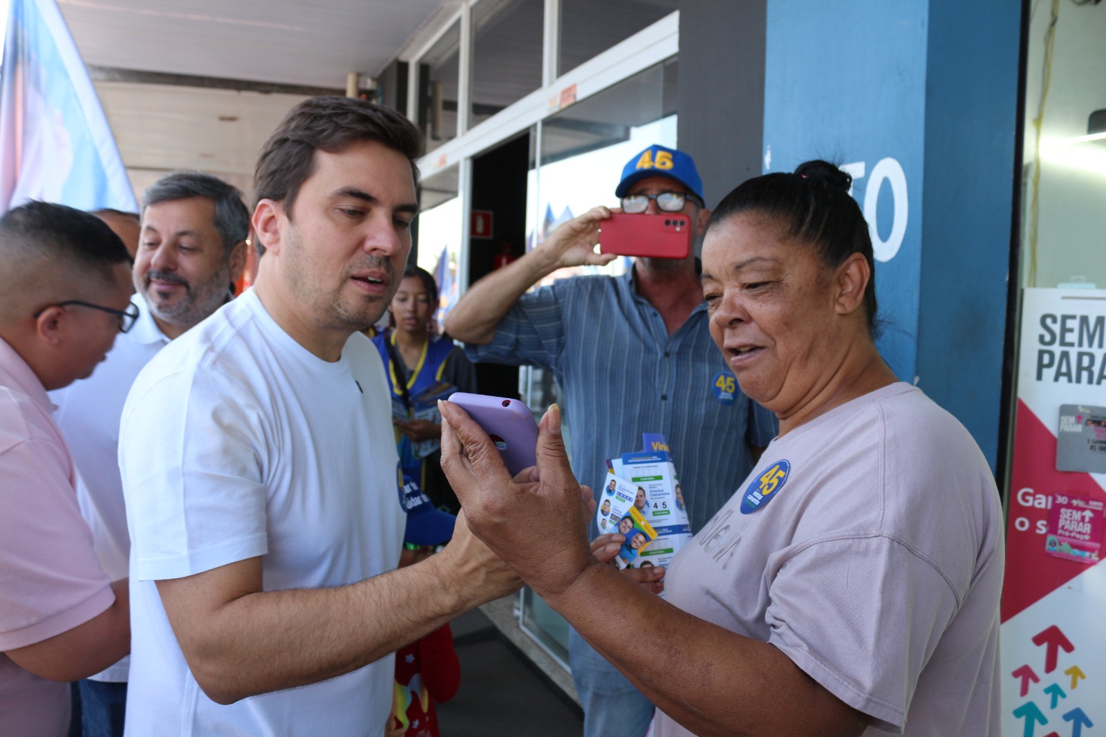 A caminhada começou cedo, com Vinicius circulando a pé pela avenida, cumprimentando moradores, entrando em lojas e interagindo com quem passava pelo local. Ele abraçou, tirou fotos e retribuiu elogios. Tratado como celebridade por alguns, o ex-prefeito brincou com uma mulher que, ao telefone, anunciou para alguém a chegada do candidato na loja onde estava. “É ele mesmo”, ao que Vinicius respondeu: “deixa eu falar com ela”.