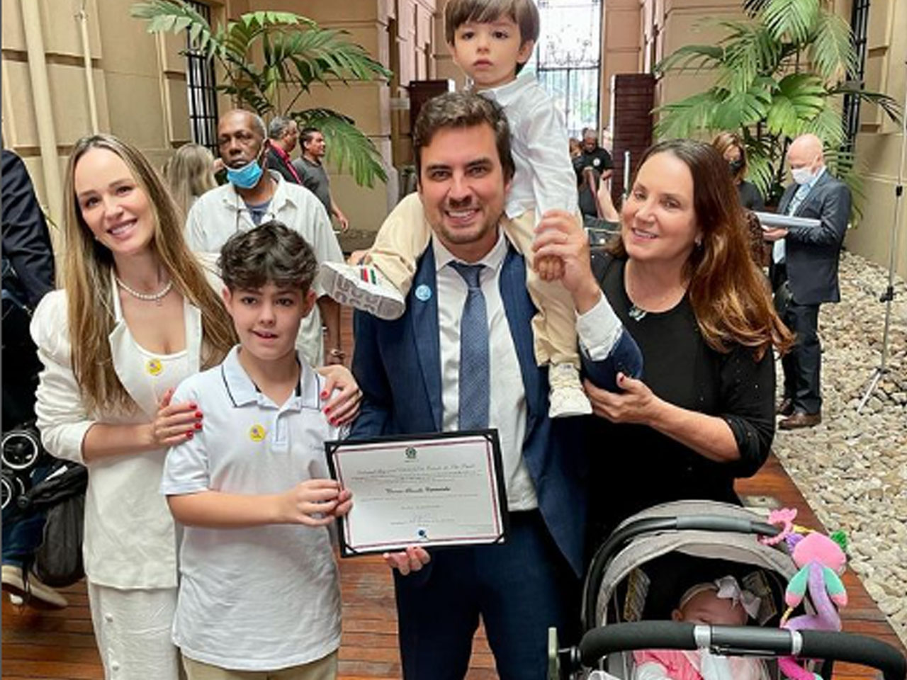 Vinicius Camarinha ao lado da família na diplomação na Alesp em São Paulo (Foto: Divulgação)