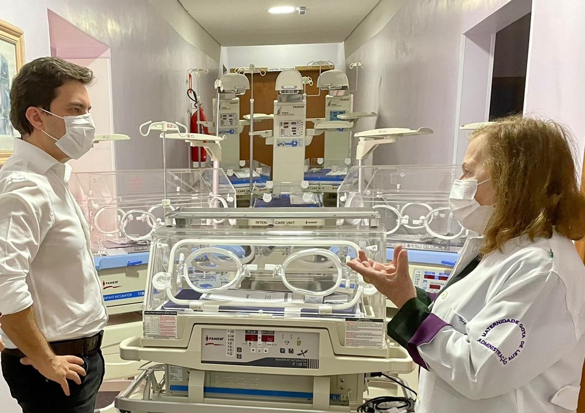 Com o recurso de R$ 300 mil, foi possível fazer a aquisição de novos equipamentos, como: um aparelho de ultrassonografia portátil, berços térmicos, respiradores para bebês e oxímetros.