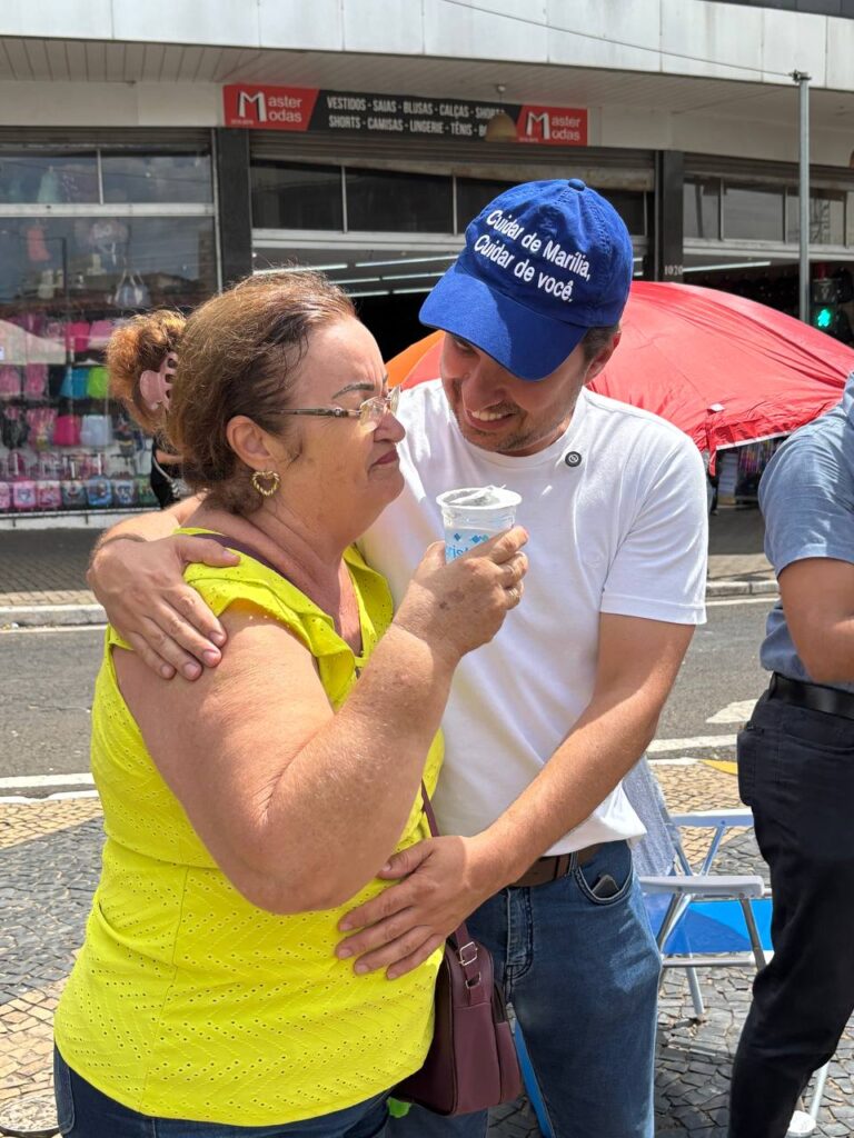 Com as temperaturas nas alturas, o prefeito de Marília, Vinicius Camarinha (PSDB), resolveu aliviar o calor da população pessoalmente na manhã desta terça-feira (18). Servidores municipais ganharam picolés e pedestres receberam água gelada em um gesto simbólico para enfrentar a onda de calor.
