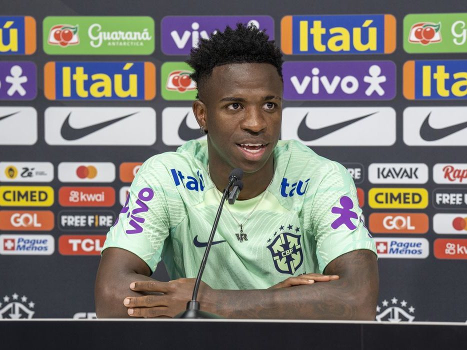 “Venho aqui para agradecer por todos que estiveram comigo desde o episódio [de agressões racistas] que aconteceu no último jogo contra o Valencia [pelo Campeonato Espanhol], o presidente [Ednaldo Rodrigues], junto com a CBF, o Infantino [presidente da Fifa], que hoje esteve conosco sempre dando a maior força. Todos os clubes do Brasil, todas as pessoas do Brasil e de todo mundo que estão comigo e me dando força para seguir nessa batalha. É necessário ter alguém que possa seguir firme e cada vez mais diminuir [o racismo]. Quero seguir [em frente] por todos os jovens que sofrem e não têm a voz que tenho. Um dia dei uma entrevista falando que queria que todos os brasileiros torcessem por mim, e acho que estou cada vez mais perto disso”, declarou o atacante.