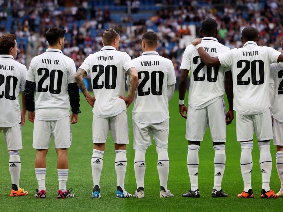 Uma das demonstrações de apoio veio do elenco do Real Madrid. Os jogadores da equipe Merengue, titulares e reservas, entraram em campo com a camisa de número 20 de Vinicius Júnior.