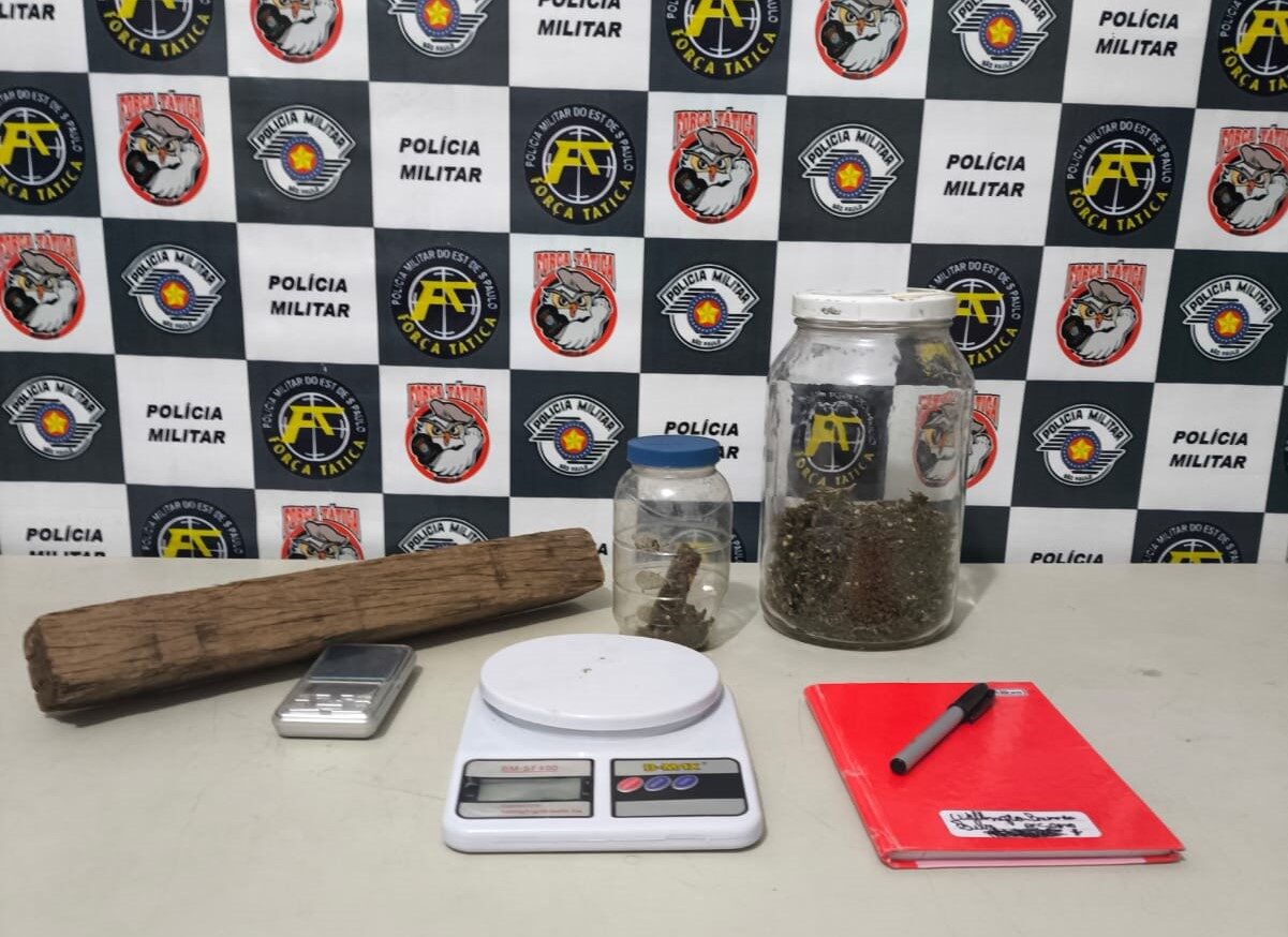 Com a autorização do pai do ajudante geral, segundo a polícia, foi feita vistoria na casa. No local, foram apreendidos, dentro do guarda-roupa do casal, 74 gramas de maconha e duas balanças digitais de precisão, além de um caderno com anotações características do tráfico de drogas.