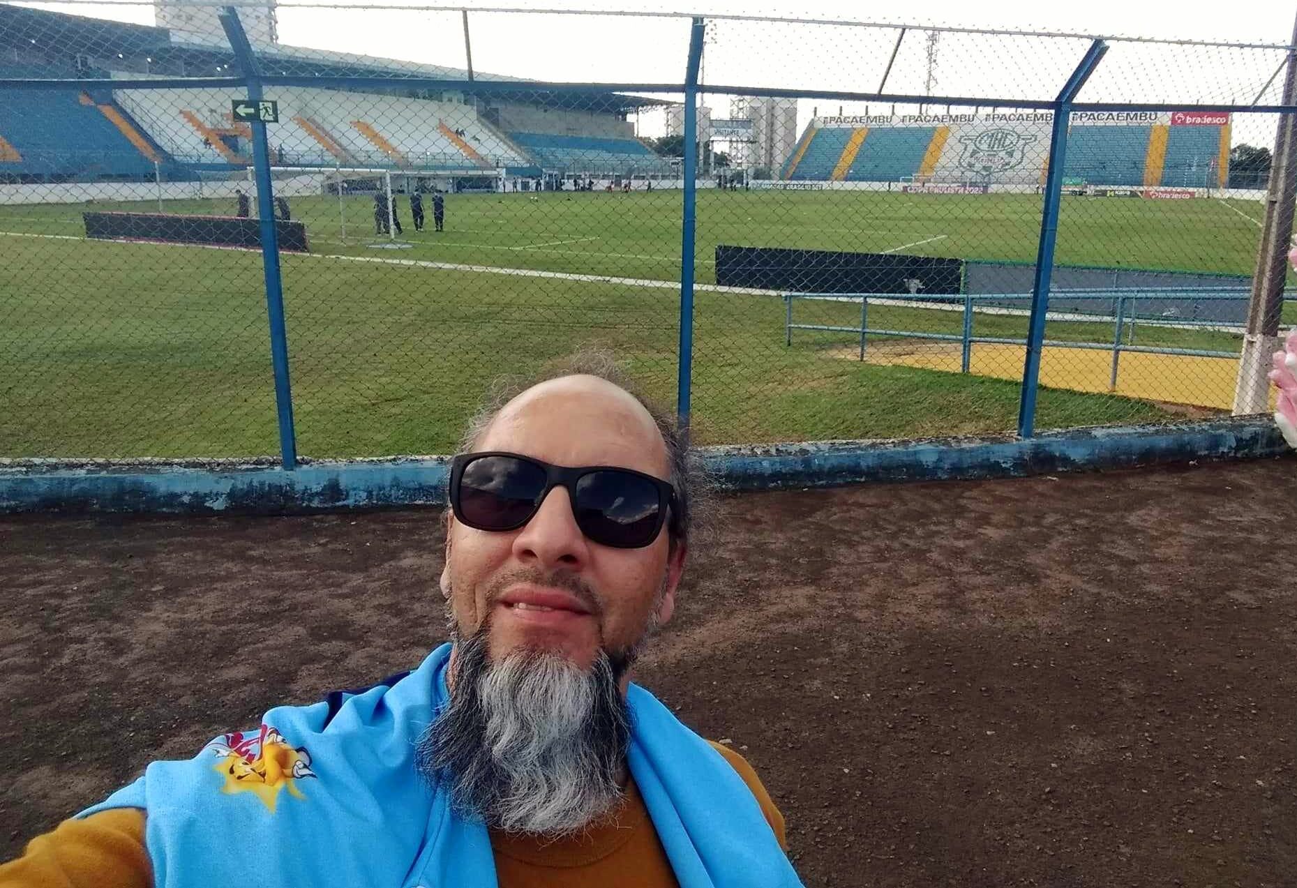 Adriano estava postando uma foto em um estádio diferente a cada rodada do Campeonato Brasileiro. A foto no Abreuzão foi publicada no dia 23 de junho deste ano, mas segundo o professor, foi tirada em 2022. É possível ver que ele está próximo do Tobogã da torcida mariliense. O professor está com uma camiseta do Marília Atlético Clube (MAC) nos ombros.