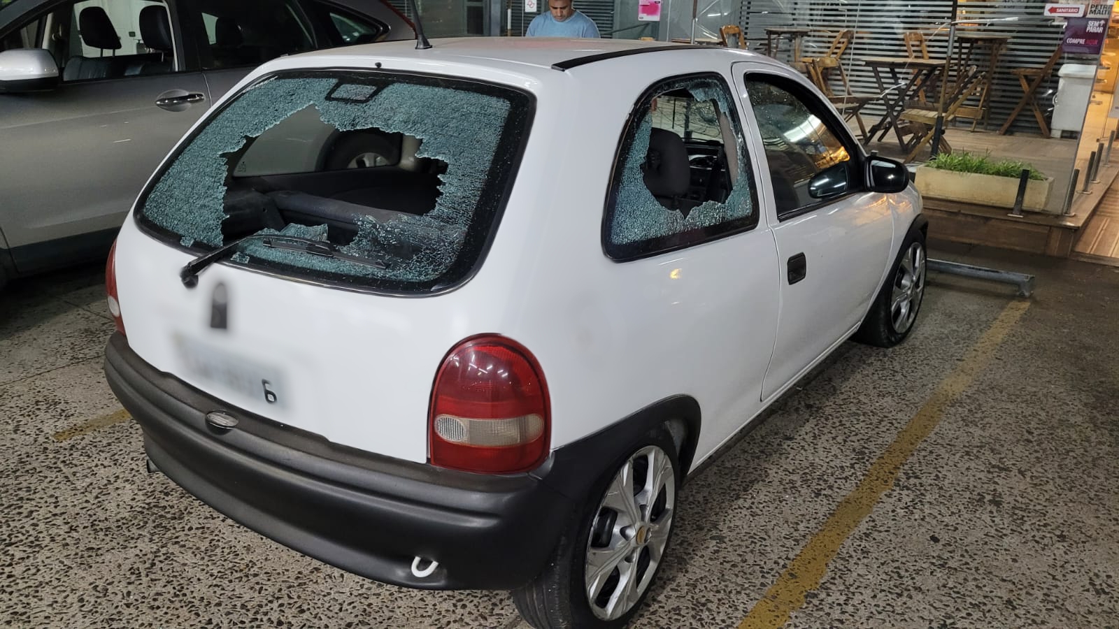 Um dos criminosos se colocou na frente do Gol, sacou uma arma da cintura e efetuou ao menos três disparos, atingindo a porta do passageiro, a porta traseira do lado do motorista e a roda dianteira do veículo. A intenção era furar o pneu para impedir a fuga, mas a testemunha que havia parado para ajudar conseguiu acelerar e deixar o local, só parando em um posto de combustíveis nas proximidades, onde acionou a Polícia Militar.