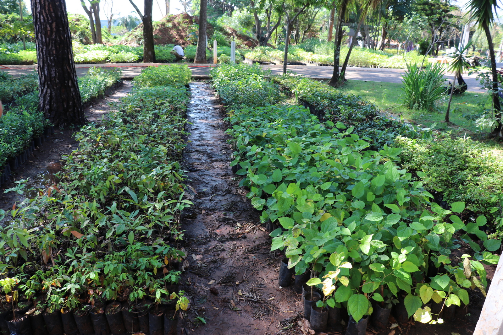 As mudas estão divididas em Nativas/Exóticas (75 espécies), Frutíferas (33), Medicinais (38), Ornamentais (42) e Subsistência (16 espécies).