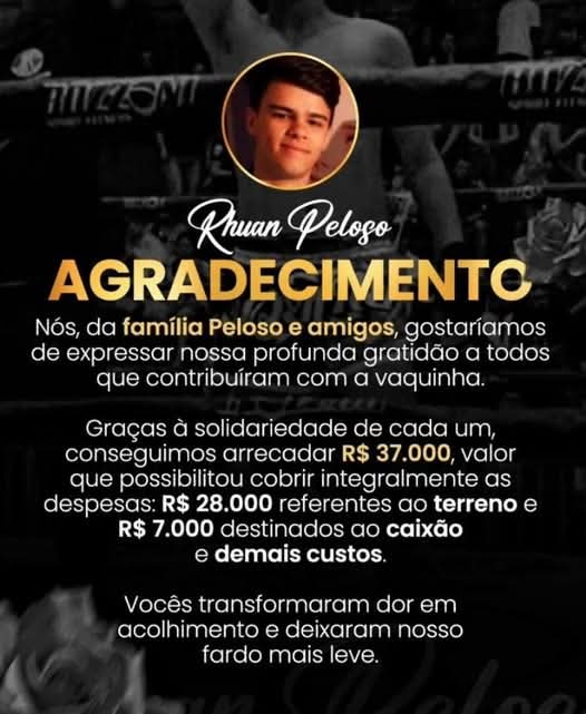 De acordo com o comunicado, a campanha conseguiu angariar R$ 37 mil — valor que cobriu integralmente os custos: R$ 28 mil foram destinados à compra do terreno no cemitério, enquanto R$ 7 mil ajudaram a custear o caixão e demais despesas da cerimônia.
