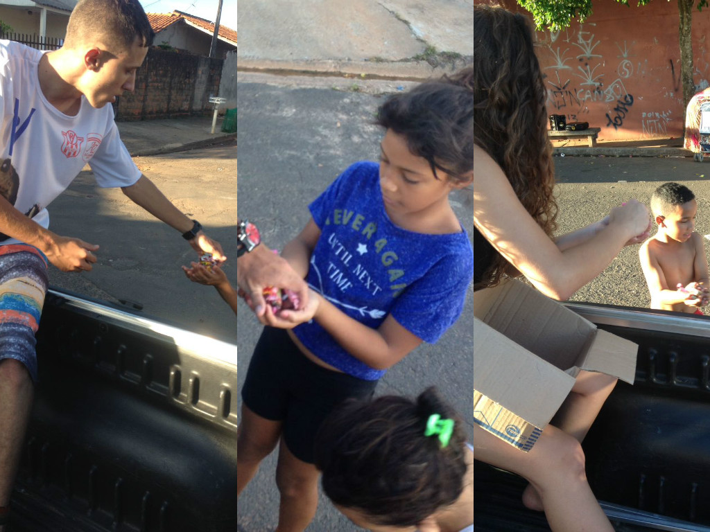 Ele começou a angariar balas há algumas semanas para alegrar as crianças de bairros mais carentes, como Parque das Azaleias, CDHU, Santa Clara, Parque Novo Mundo, Nova Marília 4 e Tóffoli.
