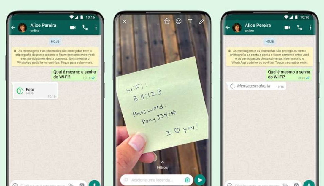 Como se fosse um “clicou, viu, sumiu”, o mensageiro irá colocar um ícone com o número 1 na tela do usuário, indicando que aquela imagem ou vídeo só poderá ser visualizado apenas uma vez. Depois que a mídia for visualizada, será mostrada a frase “Mensagem aberta”, similar ao que já faz o Instagram nas conversas privadas no aplicativo.