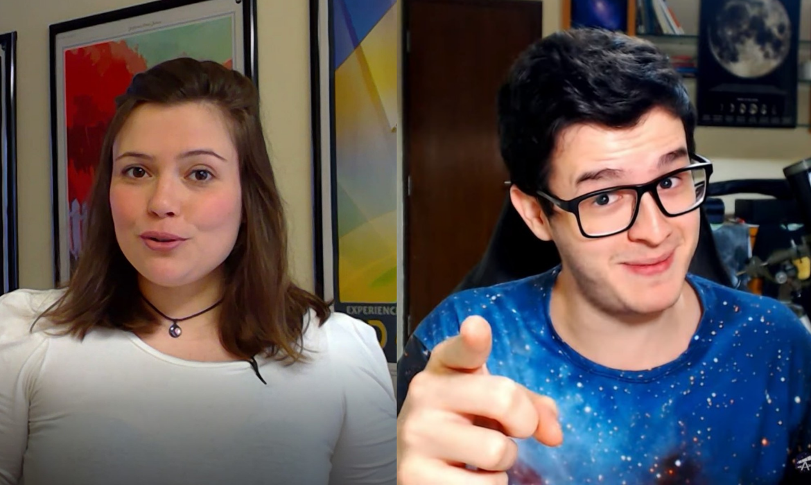 Astrônoma Karolina Garcia e estudante de física Pedro Pinheiro produzem vídeos divertidos para divulgar ciência (Fotos: Divulgação/Redes Sociais)