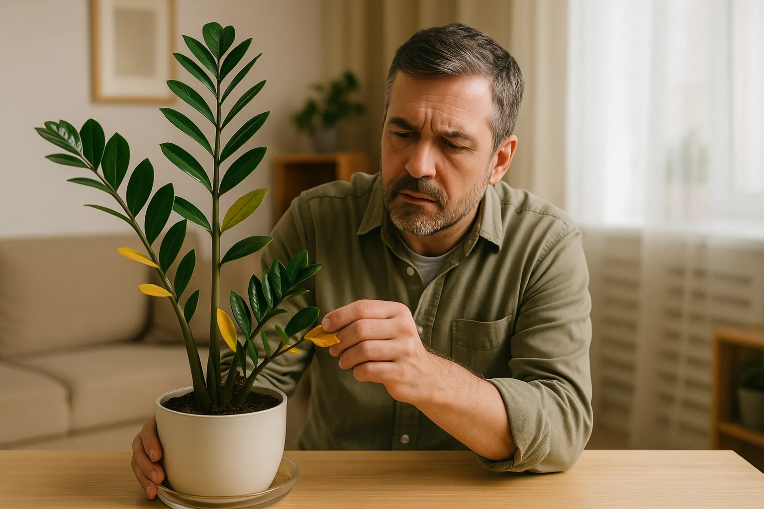 Sinais de que a zamioculca está reagindo ao excesso de umidade no vaso